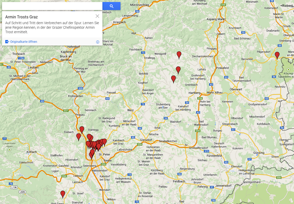 Um Details zu den einzelnen Schauplätzen anzuzeigen, klicken Sie bitte einfach die Karte an, um die Google-Maps-Ansicht zu öffnen.